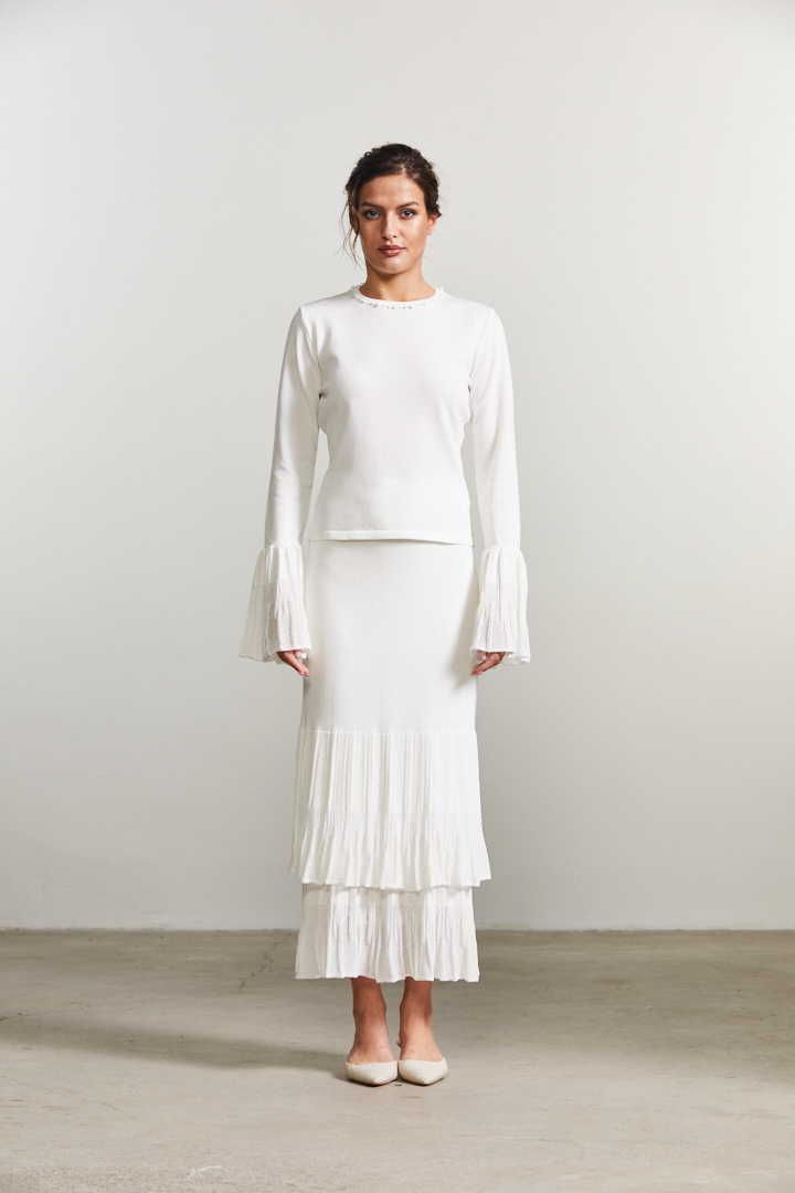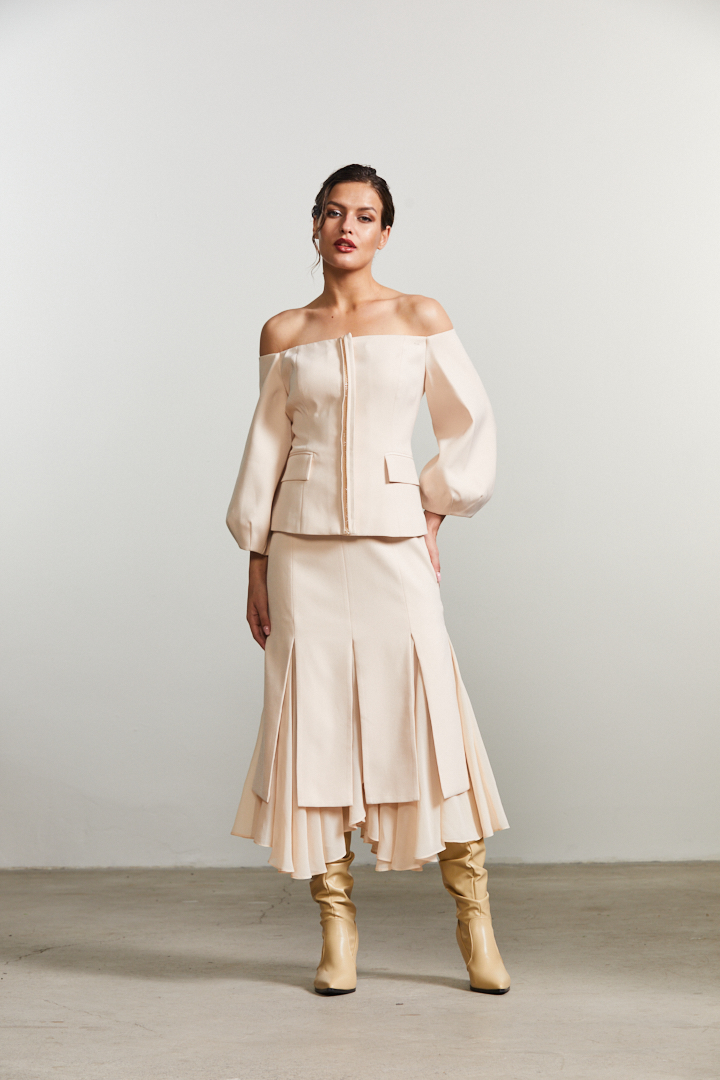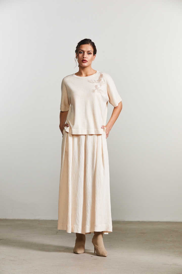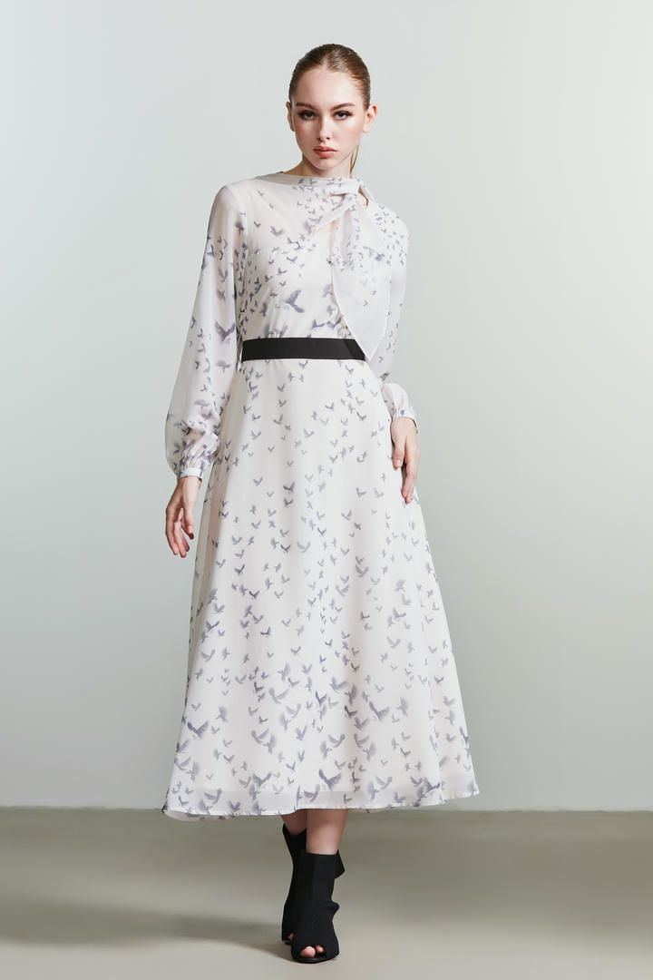 Wild Romance brings us to a fresh delicate take on the autumn season. An ultra romantic and still modern mix of textures and volumes results in a perfect mix of modern romanticism. Sheer textures meets sleek slits, soft shaped cut outs and inter- esting knots. Delicate shadow prints inspired from the shadows of flying birds inspire both blurry bird and flo- ral prints.