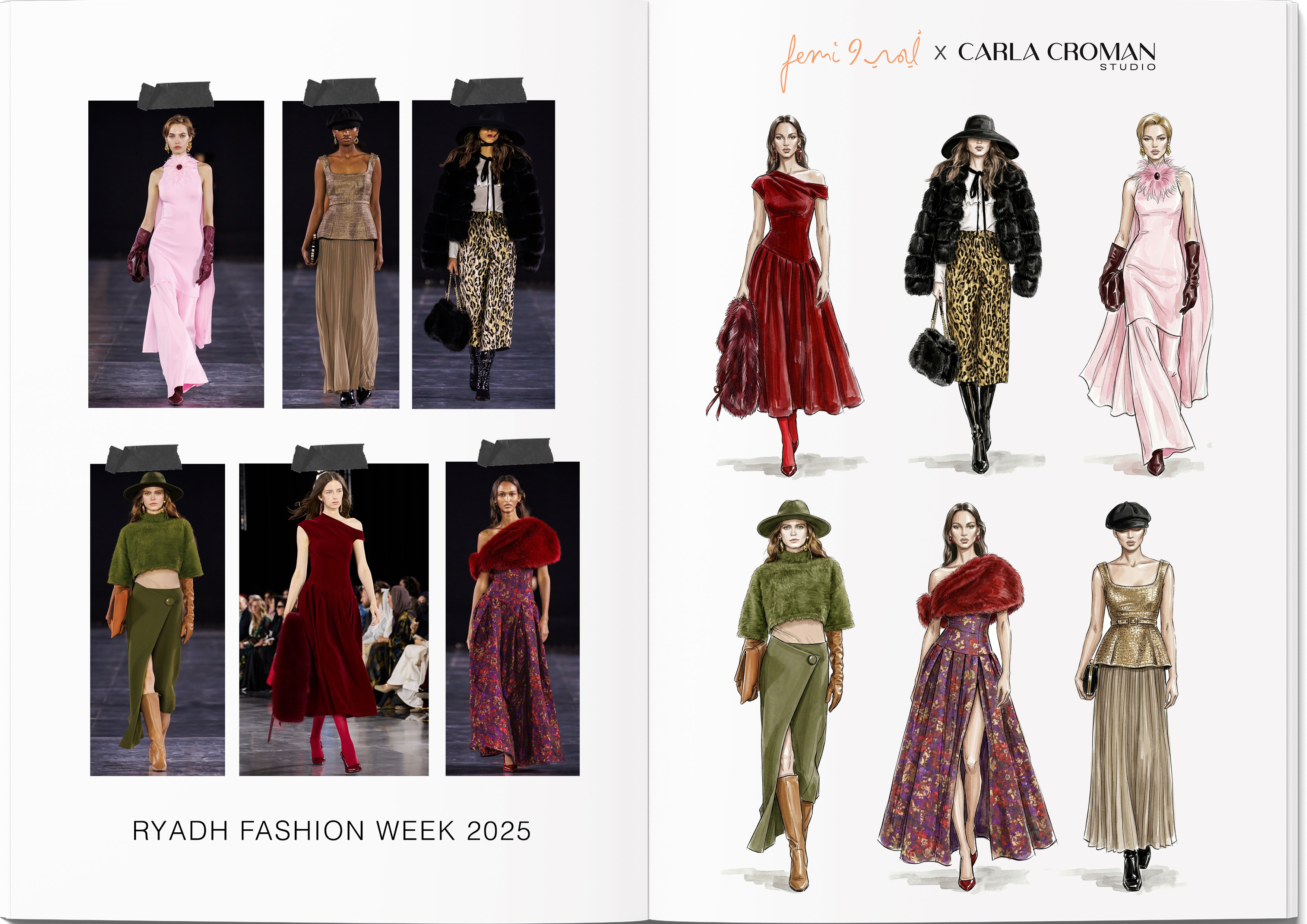 Designs developed in collaboration with Femi9 were showcased at Riyadh Fashion Week 2025. The project covered the full design process, including concept development, fabric selection, creation of detailed tech packs, and product development, resulting in a cohesive and elevated runway presentation.